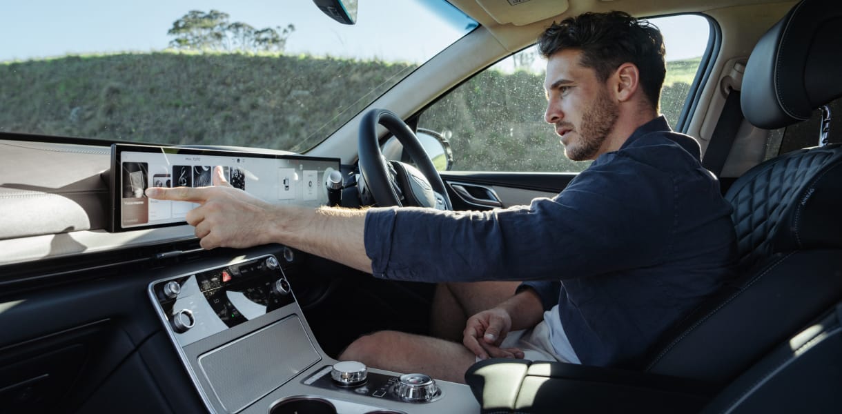 [P4] Requires Genesis Connected Services® to be activated, compatible vehicle, device & app installation, third party info, mobile data, network reception and GPS signal to operate. Mobile usage at user’s cost. Not available in areas not covered by the Optus 4G network in Australia or if services are disabled or terminated. Features and app are subject to change and vary by vehicle model and variant. Requires compatible device and connectivity, only operate in accordance with local road rules and in safe conditions. Available only on Genesis Connected Services® equipped vehicle with automatic transmission.