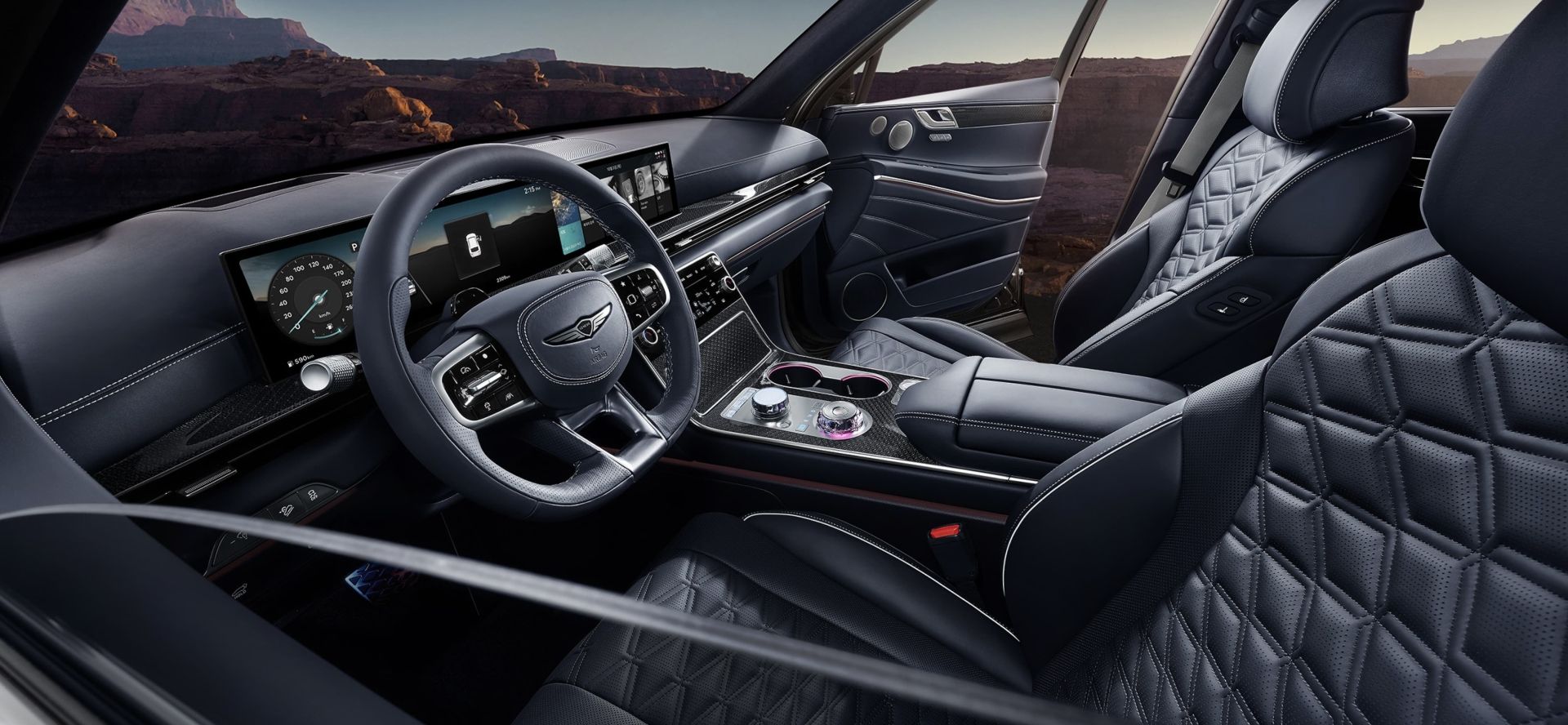 Первый ряд. Подлокотник с подогревом и функцией стерилизации подключен к системе обогрева сидений, что позволяет легко обеспечить тепло и комфорт в холодные дни. Внутри подлокотника встроенные светодиодные лампы с ультрафиолетовым излучением стерилизуют предметы во время движения.